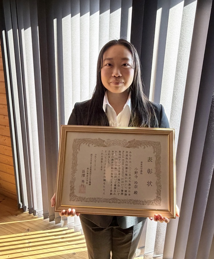帯広畜産大学の学生表彰を受賞し大学公式HPに紹介されました。